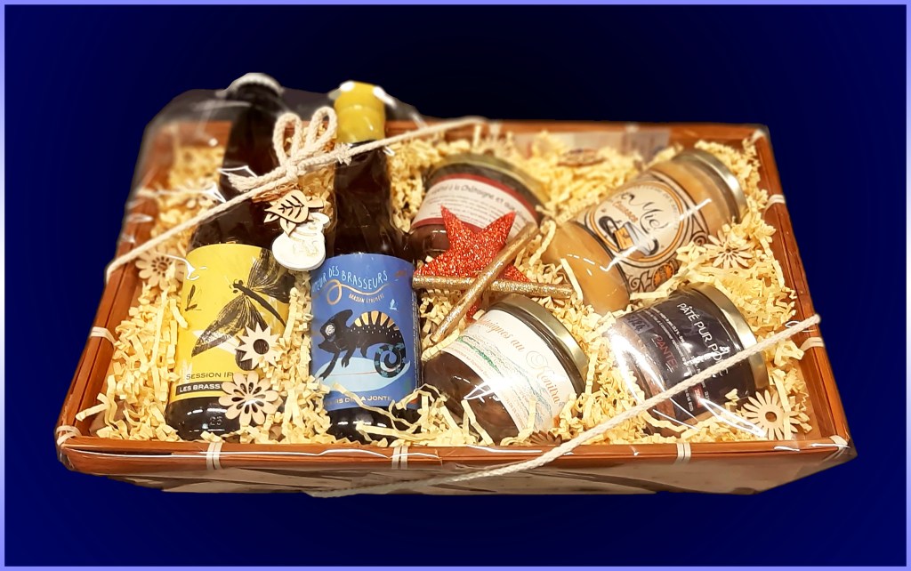 Nouveau : Le Panier Dégustation avec 1 de chaque bière ! Un joli panier que je vous ai peint à la main rempli des 19 bières et joliment décoré ! EN PLUS, ON VOUS OFFRE les 4 verres, le décapsuleur et les dessous de verres !
